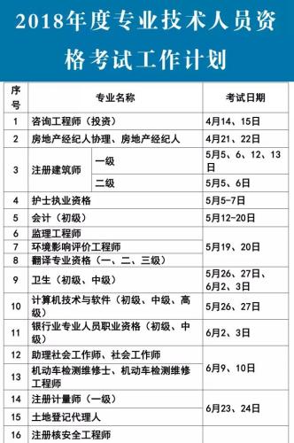 2018年要考证的人注意。人社部印发通知,公布2018年度专业技术人员资格考试工作计划,比如,会计(初级)是在5月12-20日,护士执业资格是5月5日-7日。想要考证的,赶紧转发和收藏吧!别错过了时间。话说明年你准备考什么呢?